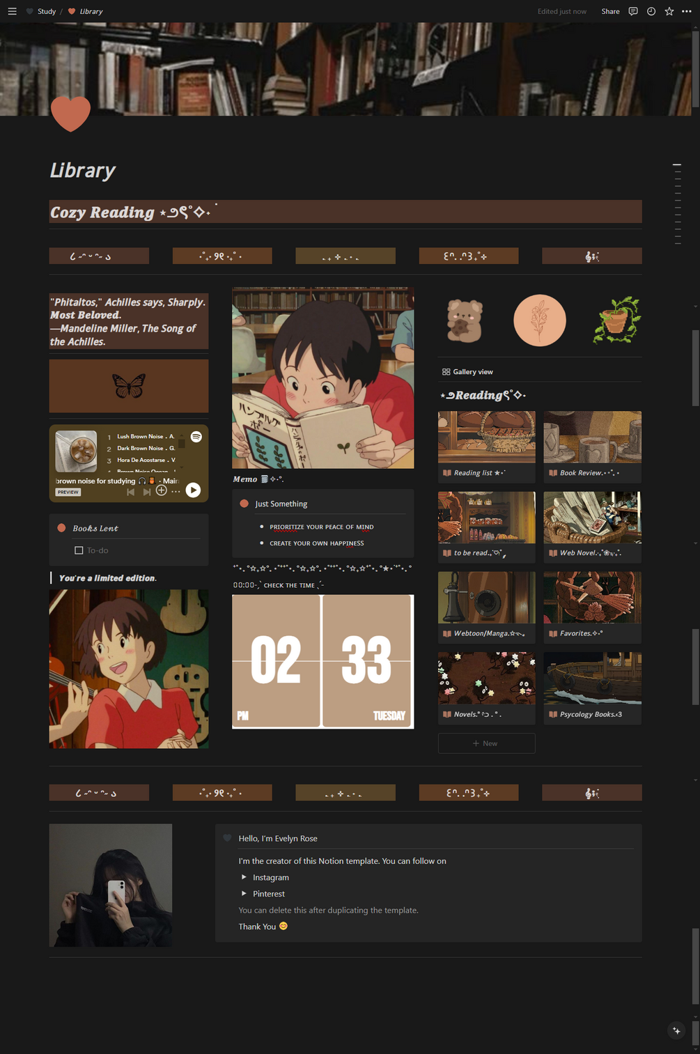Welcome to the ultimate Library Notion Template! This comprehensive template is designed to help you manage and organize your personal or professional library with ease. Whether you're a book lover, a student, a researcher, or a professional, this template offers a structured and visually appealing way to keep track of all your reading materials.